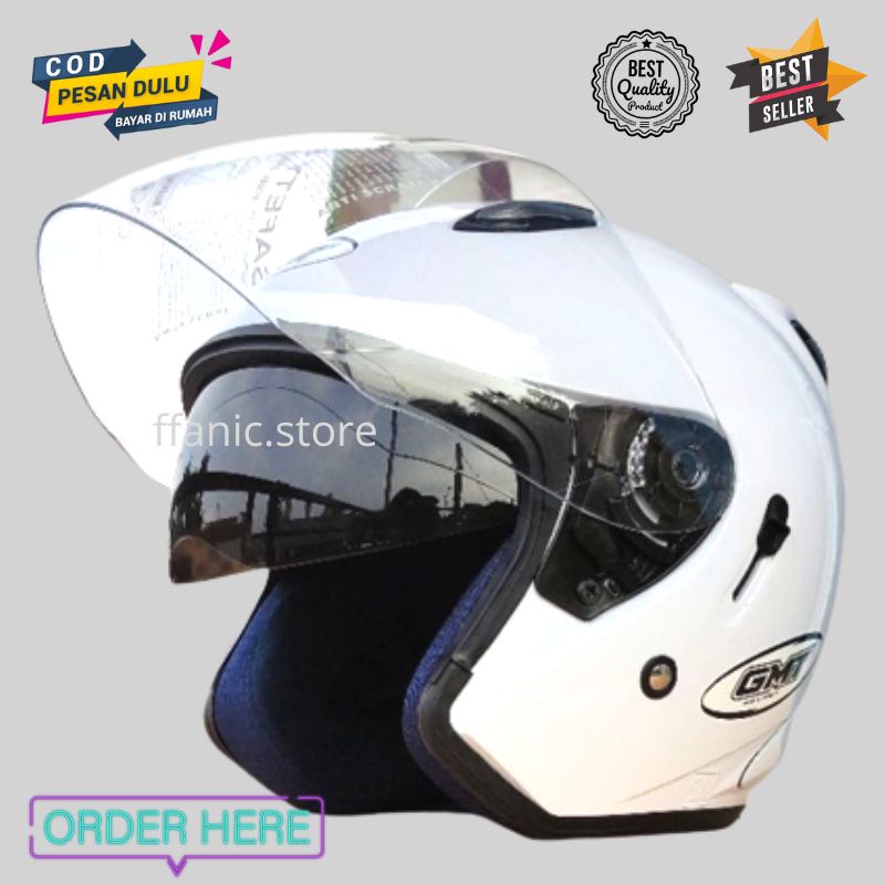 Helm GMT Half Face Original: Double Visor, SNI, Murah - Cocok untuk Pria & Wanita Dewasa!